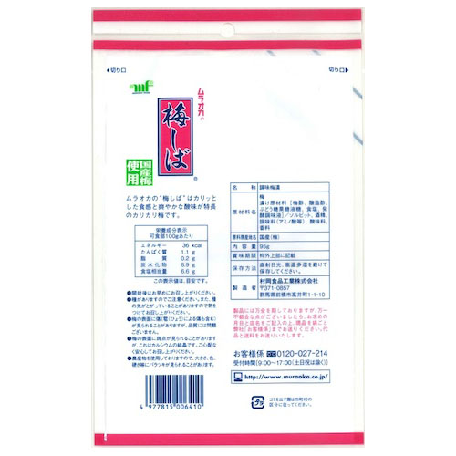 梅しば (95g入) 無着色/個包装 ×10袋入り(1ケース)